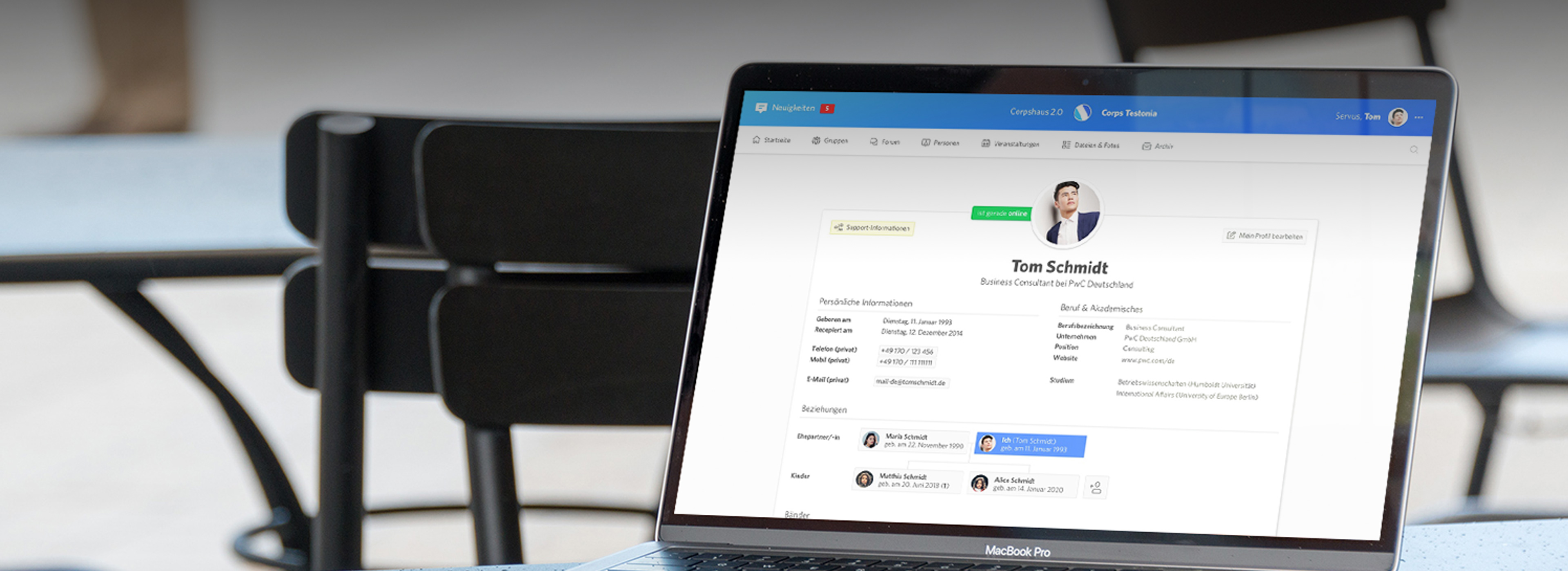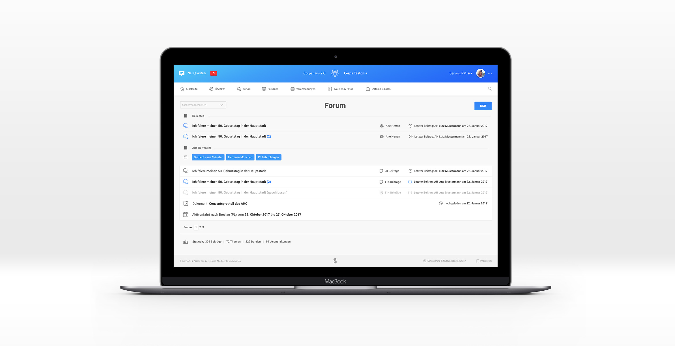 Corpshaus 2.0 is a project of suus which developed a system especially for Corps, a type of fraternities in Germany. With the web app they can administrate and manage their organization on their own. Different modules like groups, forums, files, members, archive and a lot more are enabling the digital organization.