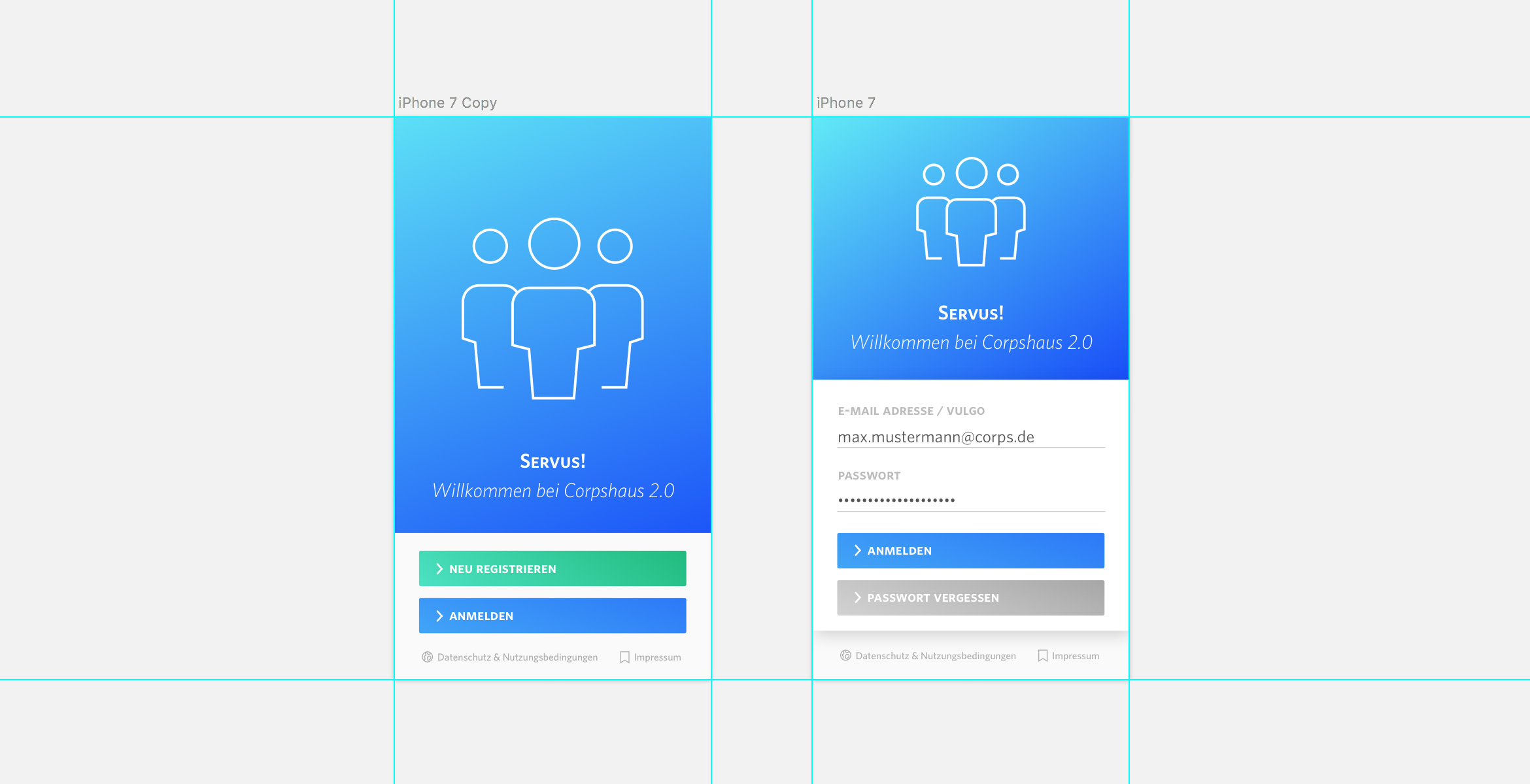 An application needs several possibilities to express functions and interactions. Thats why we decided to build an design library with different assets in different modes. We stock up this database regularly and take the classes and definitions in HTML and CSS directly for our productive system.